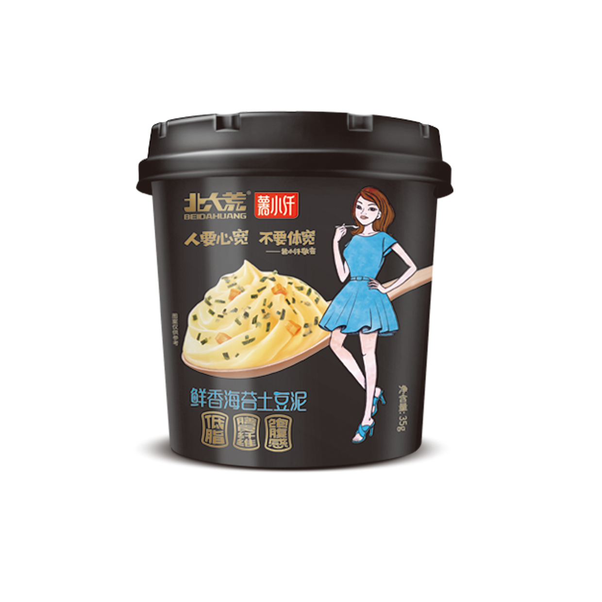 土豆泥:本產(chǎn)品以北大荒優(yōu)質(zhì)綠色馬鈴薯全粉為主要原料,科學(xué)調(diào)味、配比營(yíng)養(yǎng)、美味又健康。包括海苔味、咖喱牛肉味、牛肉味和雞茸香菇味等多種口味。